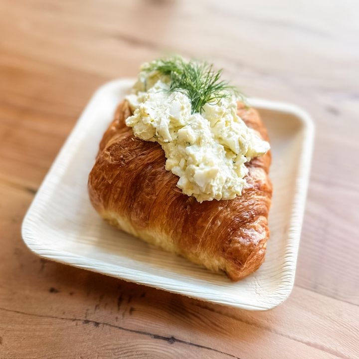 Deviled Egg Stuffed CroissantNeighbors and Friends • Pasadena, CASep 14, 2025Sharewarmed croissant stuffed with tarragon egg salad, topped with fresh dill